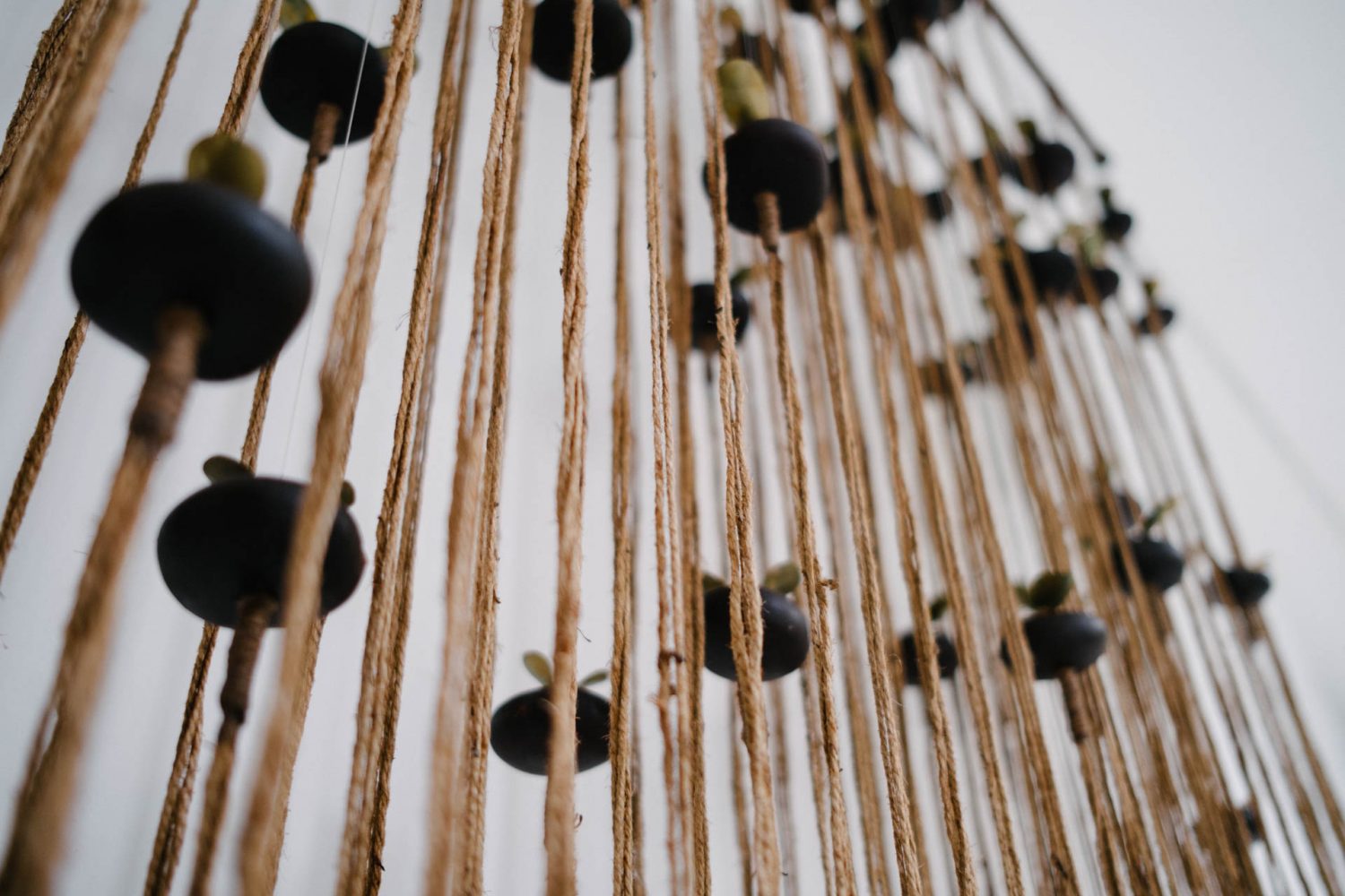 Black Seaweed by Eng Rithchandaneth features four sculptures displayed on stand. Inspired by her previous work, Parasite, she developed this new series based on recent research trying to understand how best to use materials. Two of her sculptures look like a snag tree and the mushrooms that grow on it. The other two are made of layers of wood-ear mushrooms. This shows the artist’s willingness to allow her work to evolve according to the material’s qualities and natural environment, reflecting the current economic development landscape.